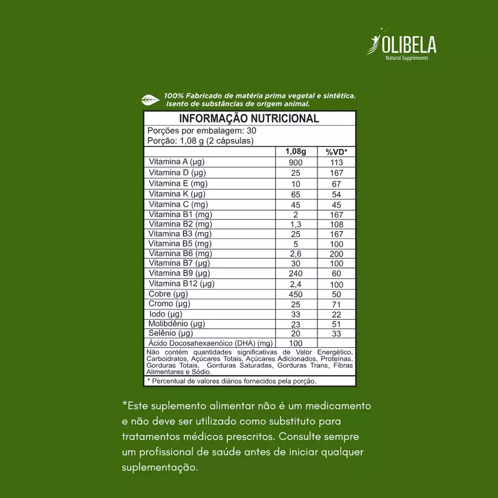 DHA Vegano com Vitaminas e Minerais – Saúde do Cérebro, Visão e Coração | 100% Plant-Based. Cuide da sua saúde de forma natural e consciente com nosso suplemento de DHA Vegano com Vitaminas e Minerais, desenvolvido especialmente para quem busca nutrição avançada sem ingredientes de origem animal.