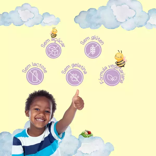 - Apoio diário para concentração e energia: vitaminas do complexo B, ferro e zinco ajudam a manter o foco nas atividades escolares e o bem-estar geral das crianças.